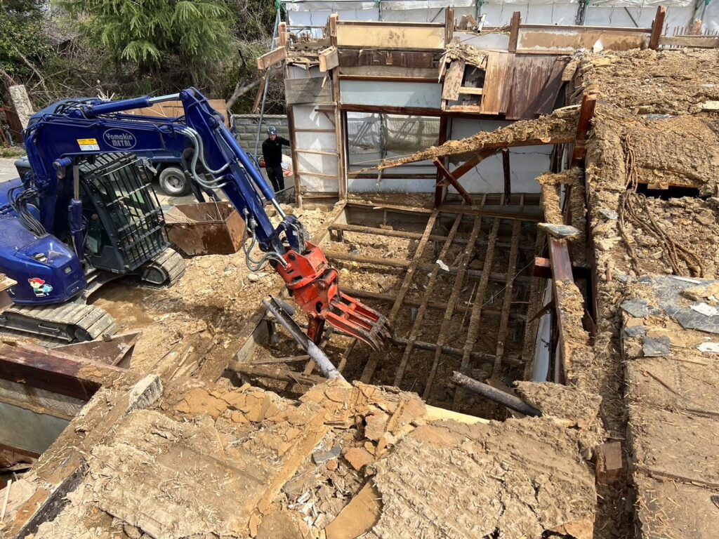屋根部分は分別処理をしないといけないため、手作業で解体をしていきましたが、ここから活躍するのはこちらの重機です。