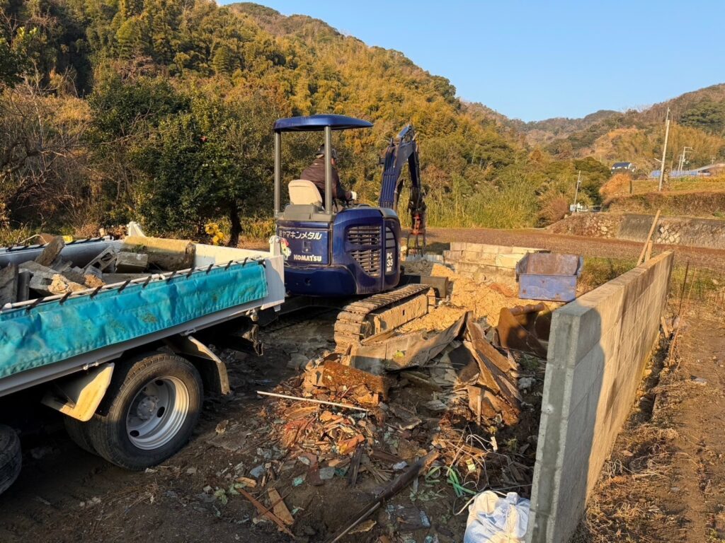 今回の淡路市佐野の解体作業では、重機PC35MR-3を使用し基礎とコンクリートブロック塀を撤去し、更地に仕上げていきます。