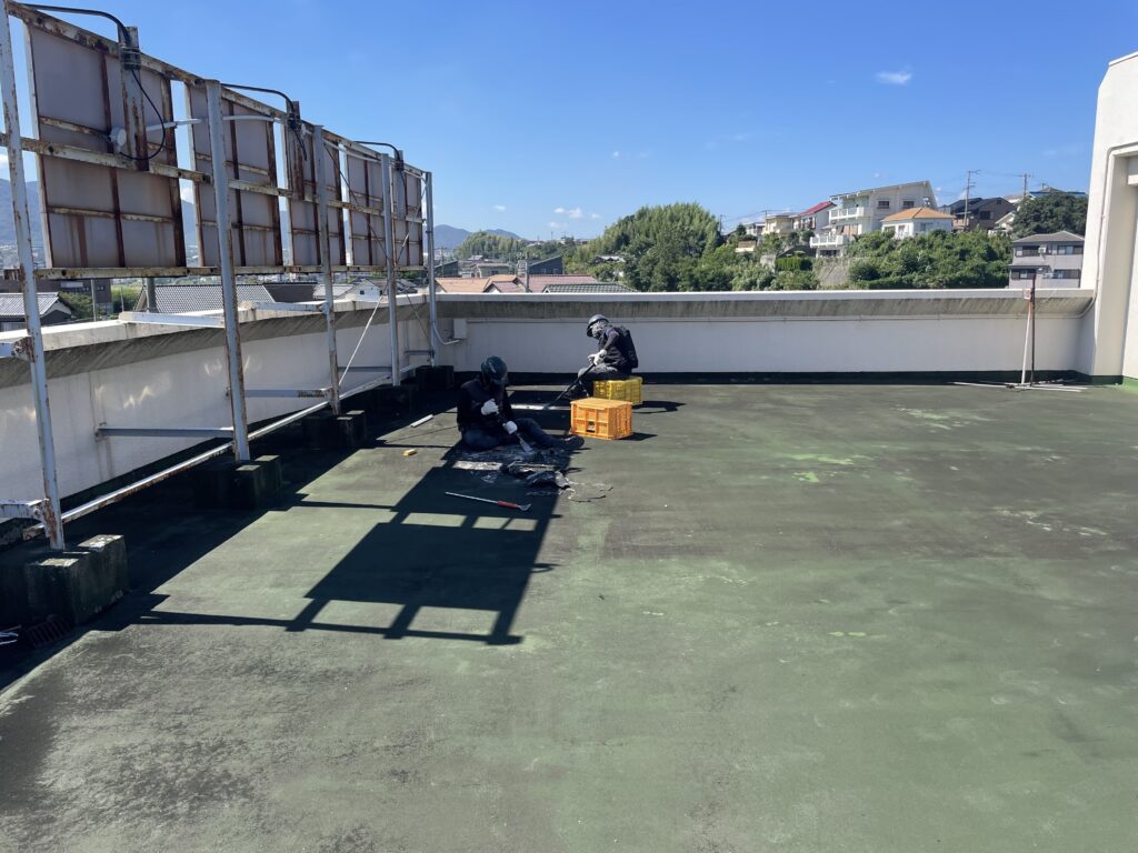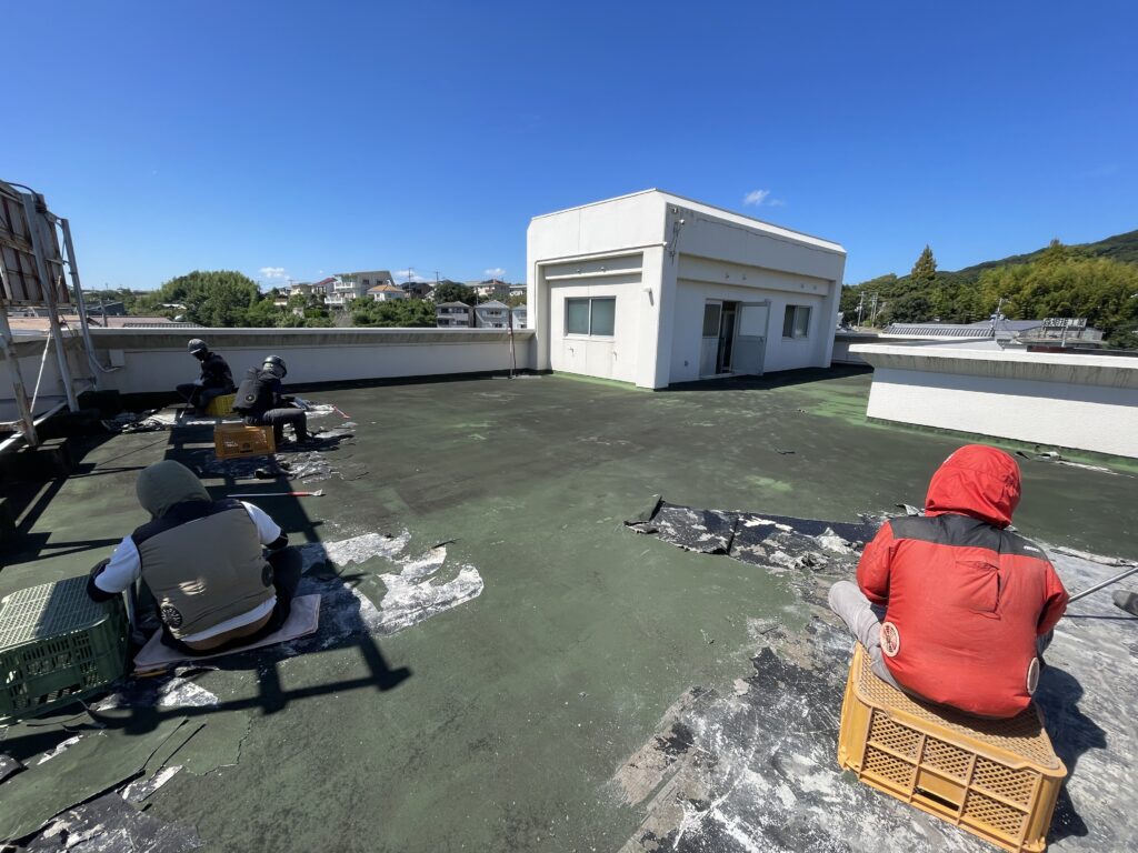 防水シートは粘着力が強力なため、撤去するのに苦労する作業です。