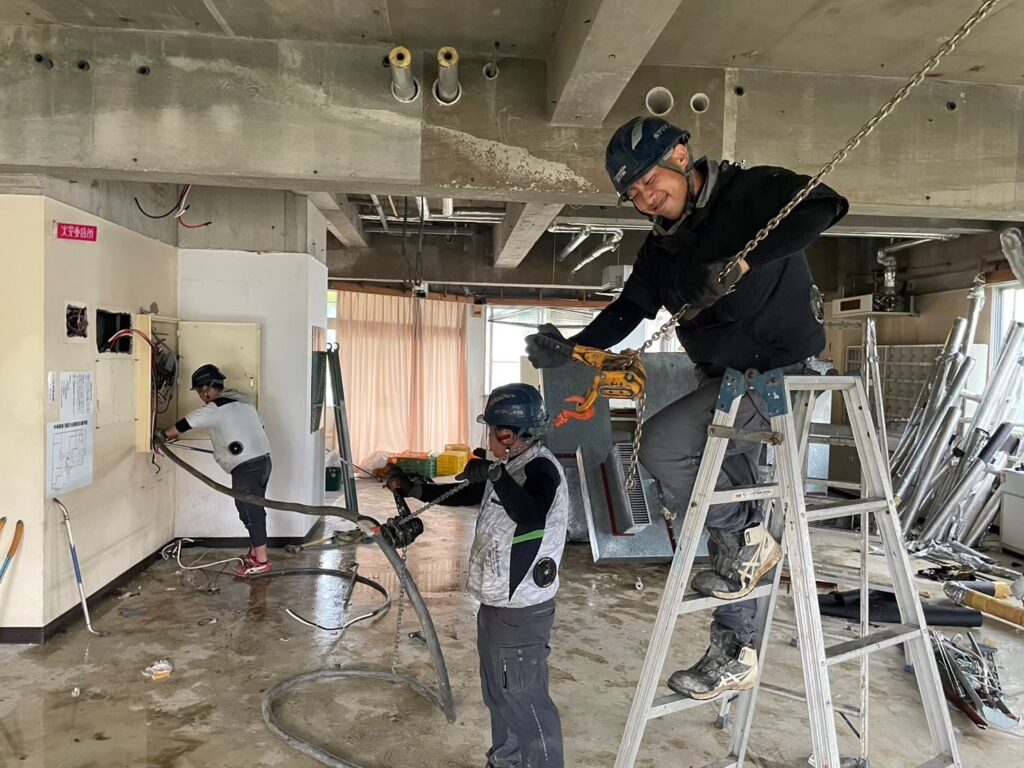 洲本市宇原の内装解体作業は手作業で解体し、断熱材や石膏ボード、配線や配管などの内装材を分別処理をしていきます。