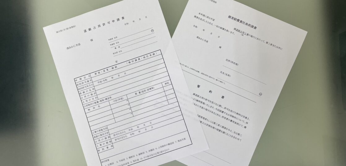 今回は南あわじ市で道路を使用して解体工事をする際に必要となる道路占用許可の申請についてご紹介します。