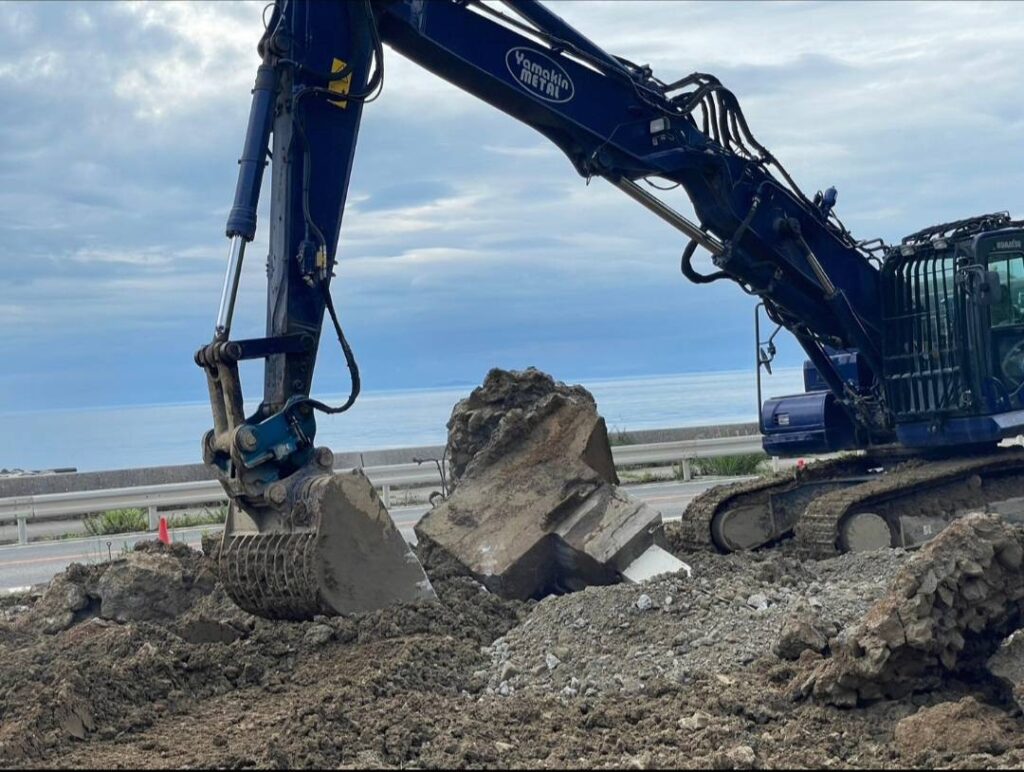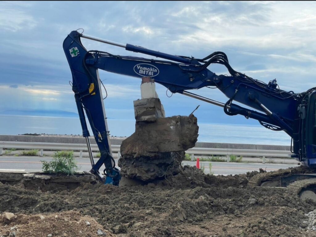 今回は重機PC210LC-11を使用し大きな基礎を撤去し、更地に仕上げていきます。
